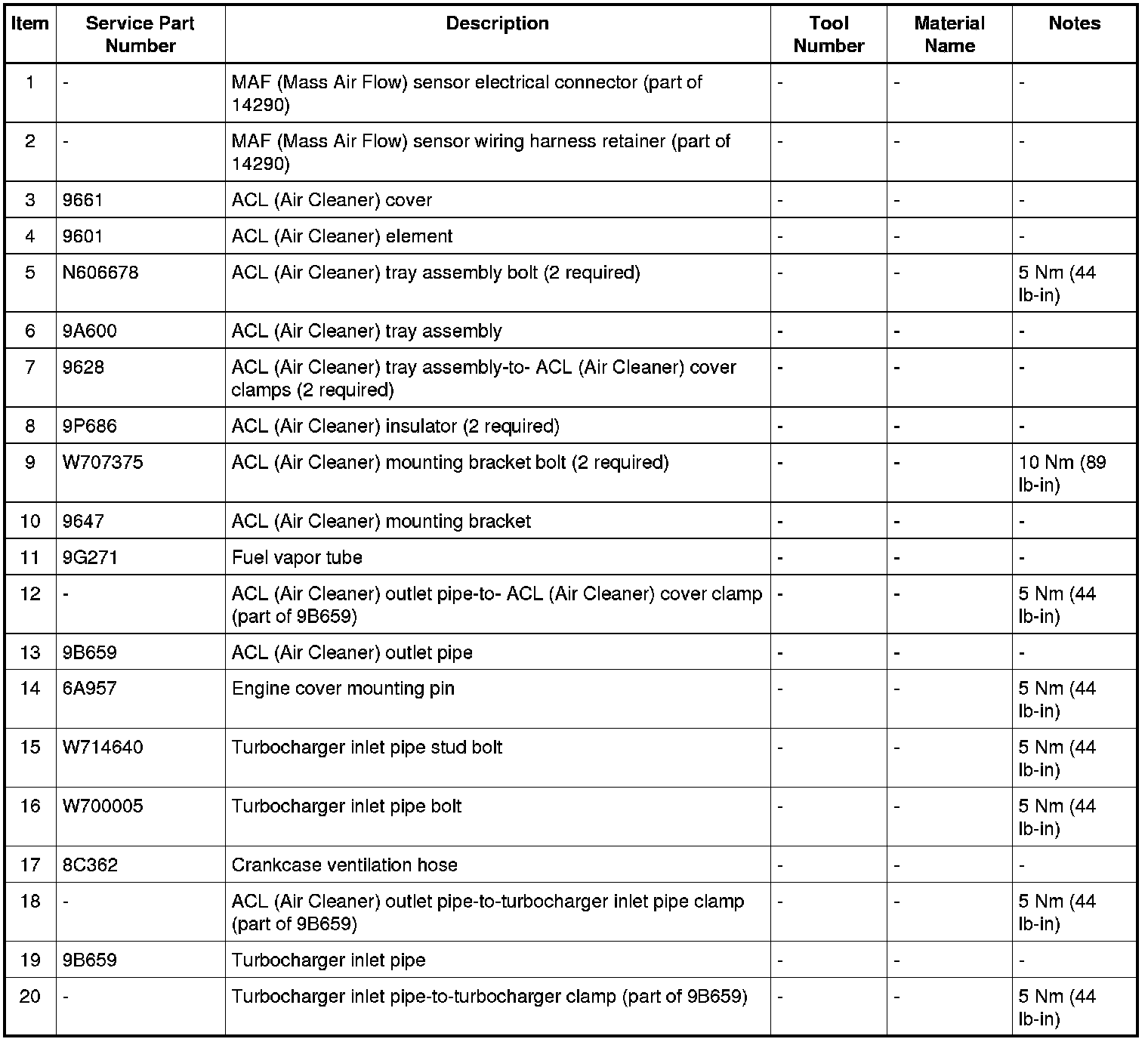 2.0L GTDI Charge Air Cooler (CAC) Inlet Pipes