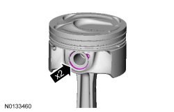 1. Align the piston-to-connecting rod orientation marks and position the piston on the connecting rod.
