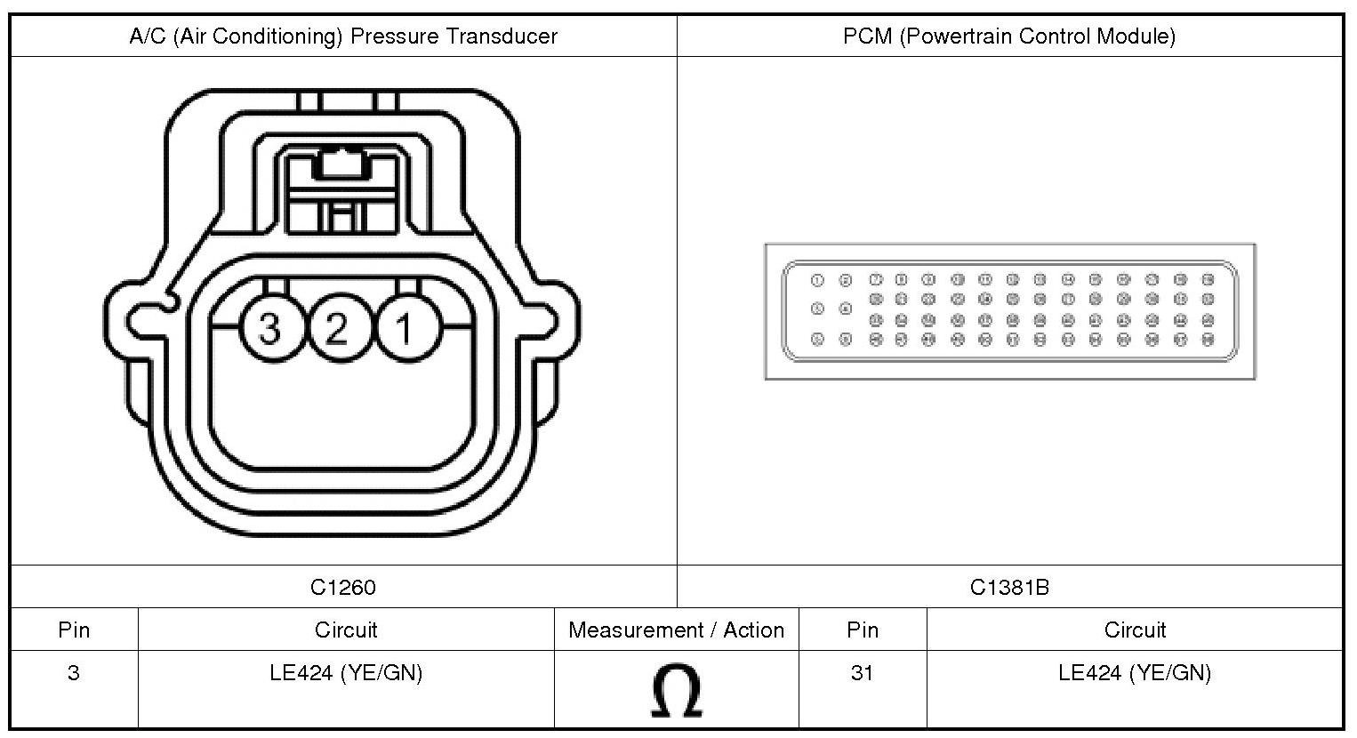 7. CHECK THE A/C (Air Conditioning) PRESSURE TRANSDUCER FEEDBACK CIRCUIT FOR AN OPEN
