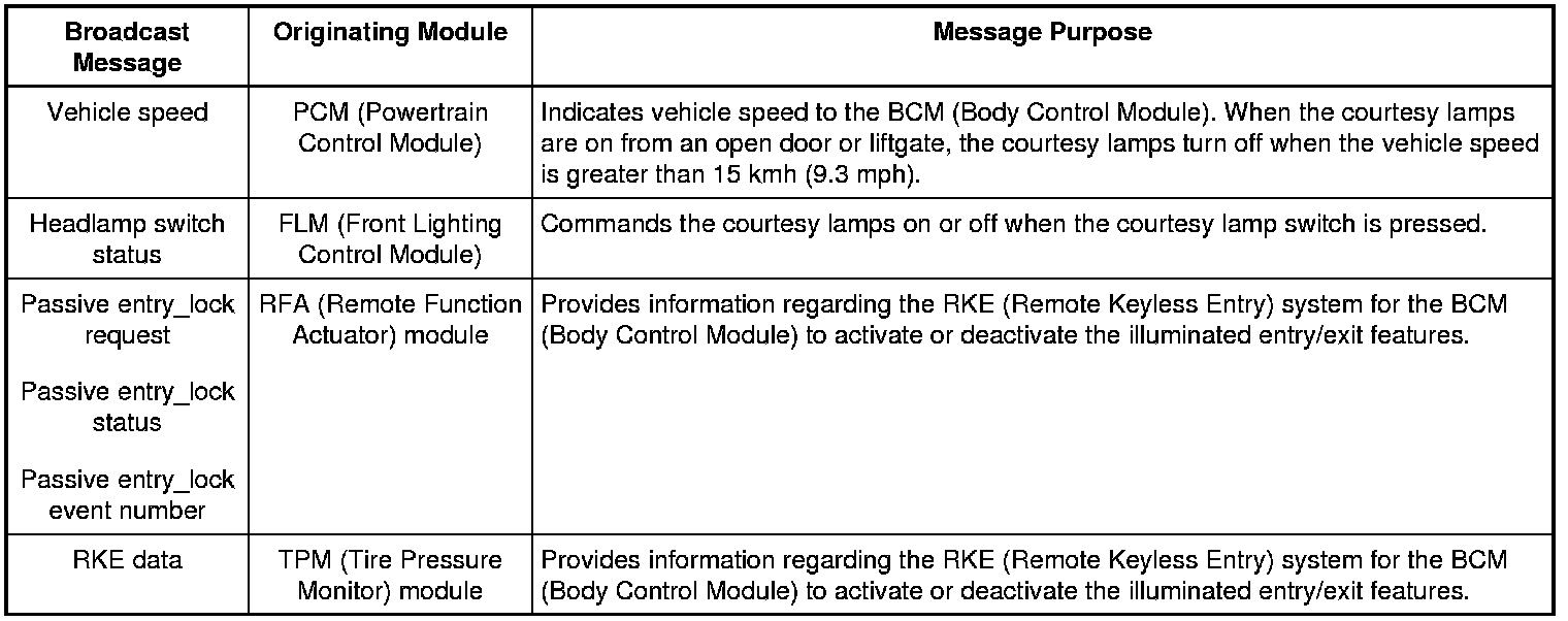 The interior lamp arbitrator (programming within the BCM (Body Control Module)) chooses between the interior lighting delay, the illuminated entry and exit, the battery saver, and the alarm flash processing to determine which feature has precedence of activating and deactivating the interior lamps.