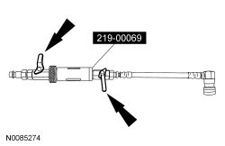 2. Assemble the dye/lubricant injector and the correct adapters from 219-00069 to match the amount of refrigerant compressor oil to be injected.