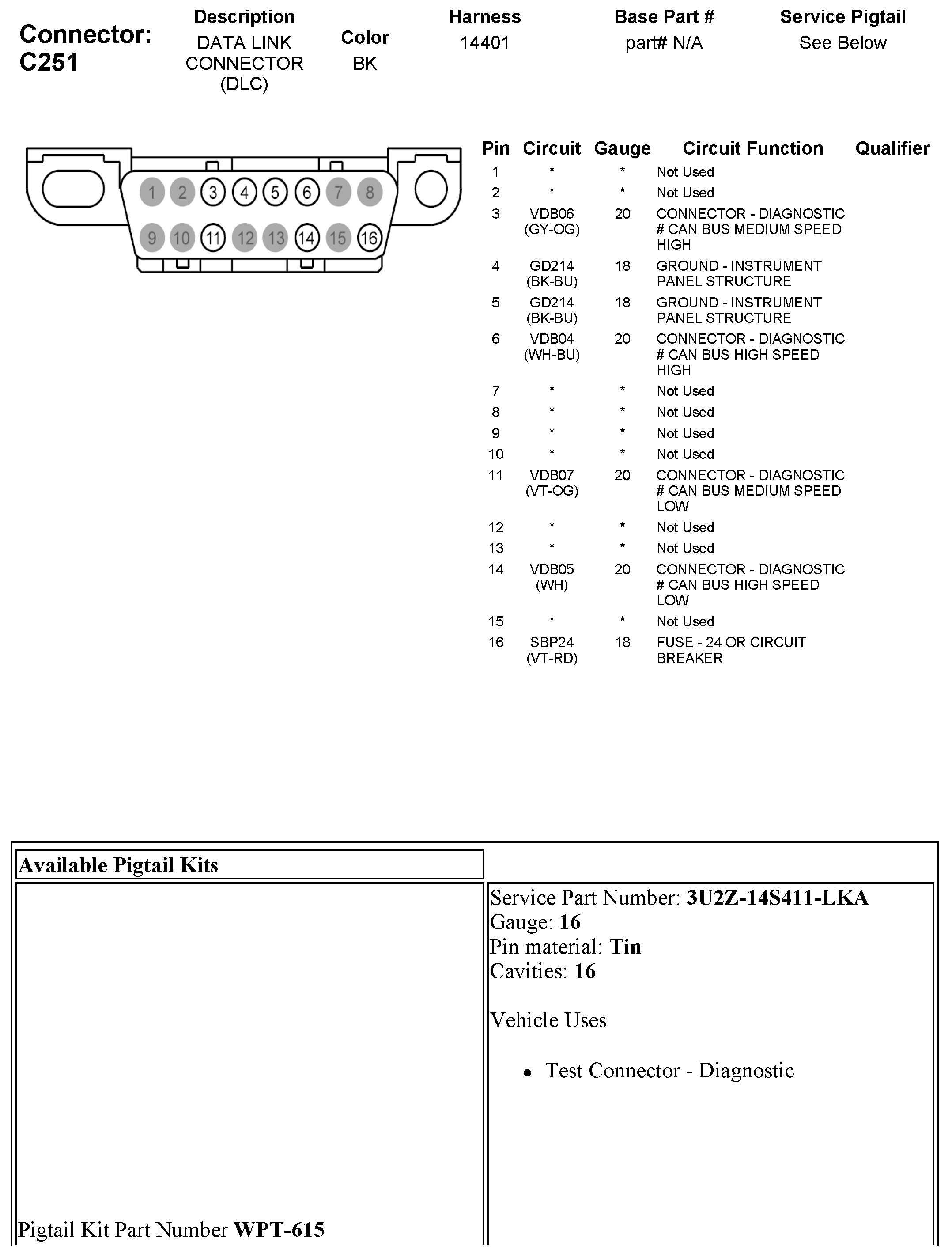 Data Link Connector: Diagrams