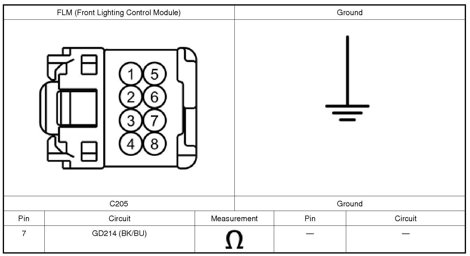 2. CHECK THE FLM (Front Lighting Control Module) GROUND CIRCUIT FOR AN OPEN