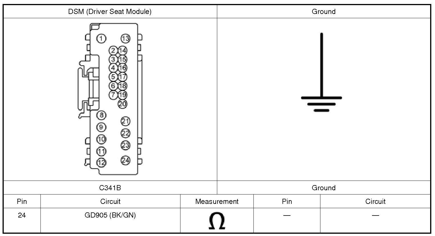 2. CHECK THE DSM (Driver Seat Module) GROUND CIRCUIT FOR AN OPEN