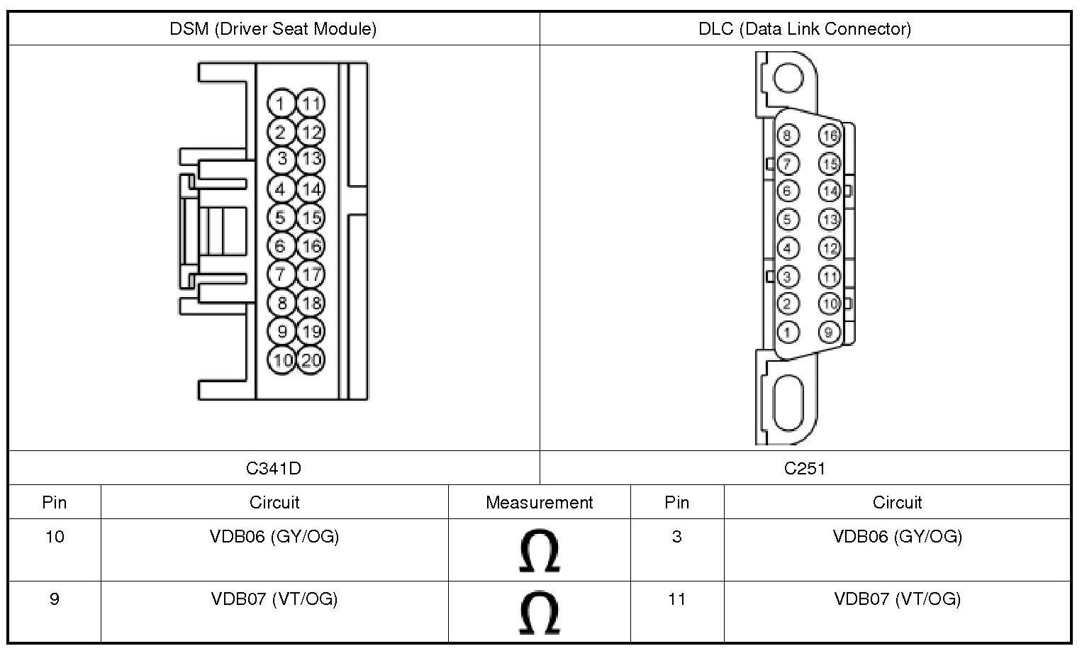 1. CHECK THE DSM (Driver Seat Module) VOLTAGE SUPPLY CIRCUITS FOR AN OPEN