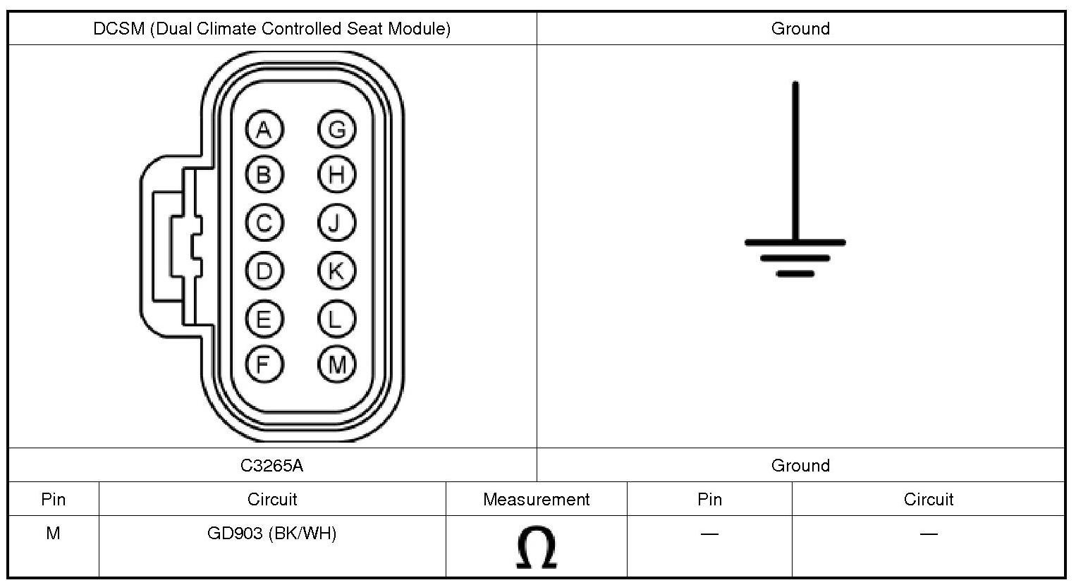 2. CHECK THE DCSM (Dual Climate Controlled Seat Module) GROUND CIRCUIT FOR AN OPEN