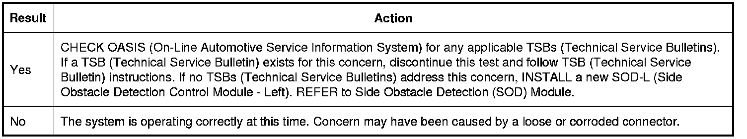 4. CHECK FOR CORRECT SOD-L (Side Obstacle Detection Control Module - Left) OPERATION
