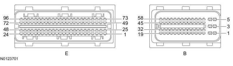 Powertrain Control Module (PCM) Connector - For PCM connector views or reference values, refer to Reference Values.