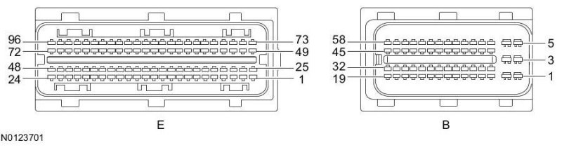 Powertrain Control Module (PCM) Connector - For PCM connector views or reference values, refer to Reference Values.