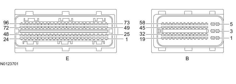 Powertrain Control Module (PCM) Connector - For PCM connector views or reference values, refer to Reference Values.