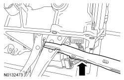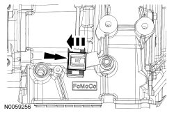 6. NOTICE: Put a block of wood on the transmission case before prying the TR (Transmission Range) sensor retaining pin out. Failure to protect the sealing surface of the transmission case will result in transmission case damage.