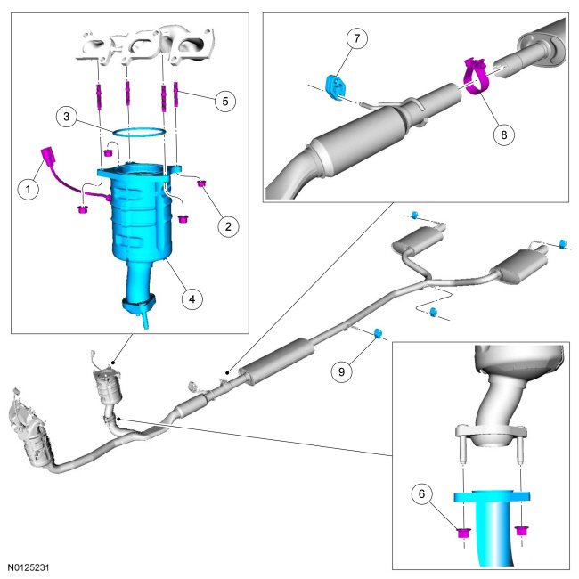 3.5L RH Catalytic Converter and Exhaust Pipes