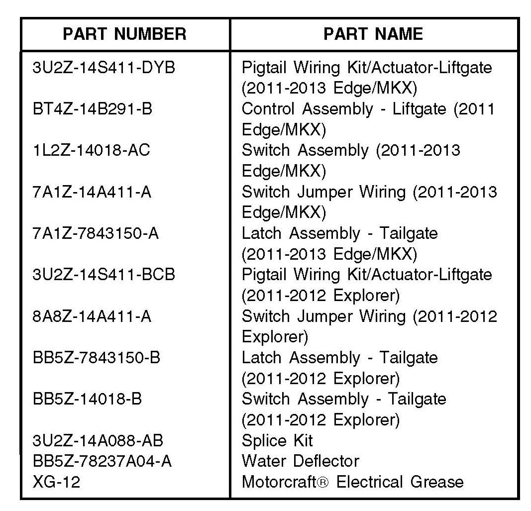 Some 2011-2012 Explorer, 2011-2013 Edge and MKX vehicles built on or before 3/2/2012 may exhibit a concern with the power liftgate opening after a close switch command occurs. The concern typically occurs when the ignition is cycled on before the lifigate hatch is fully closed. Liftgate may also open intermittently when parked.