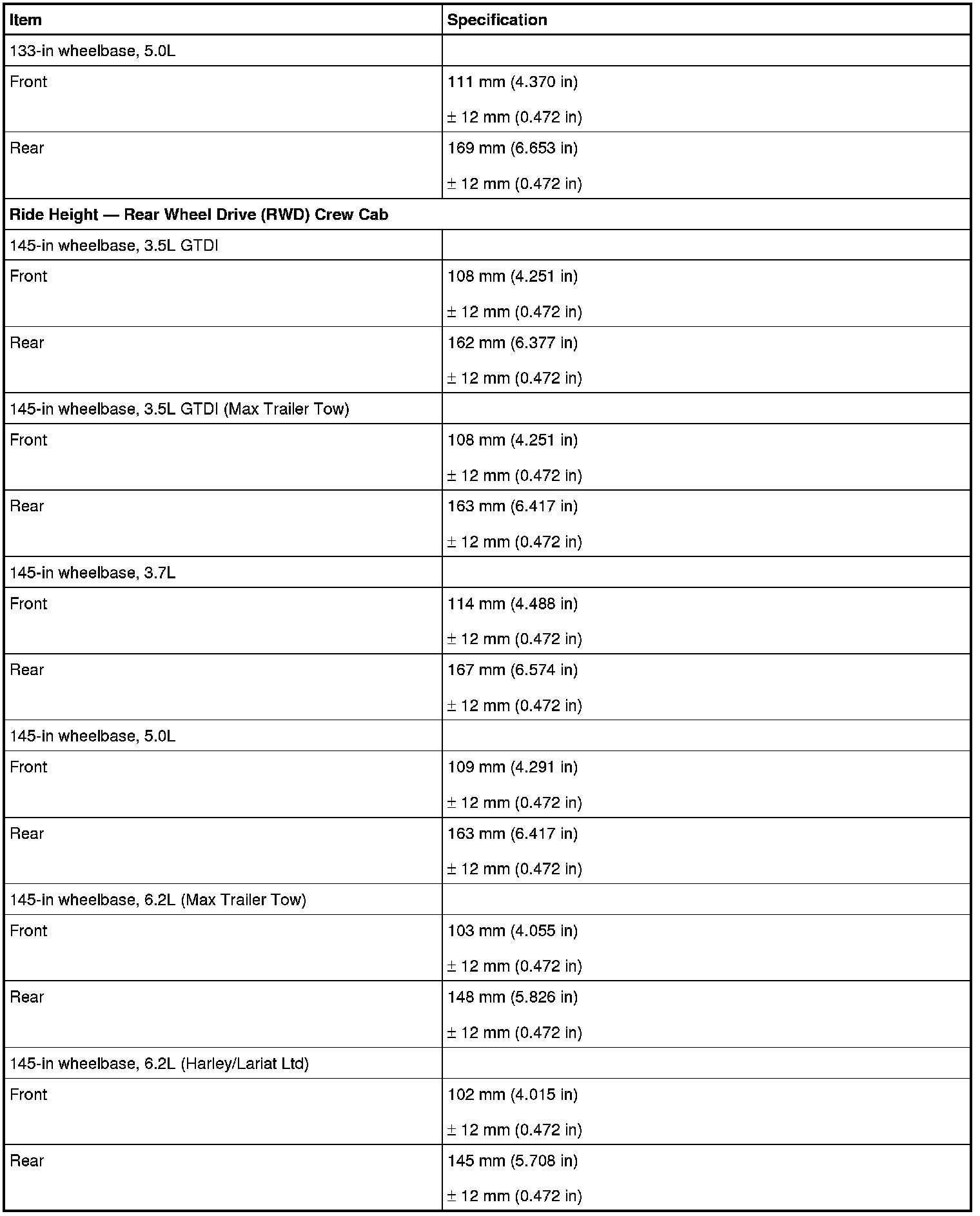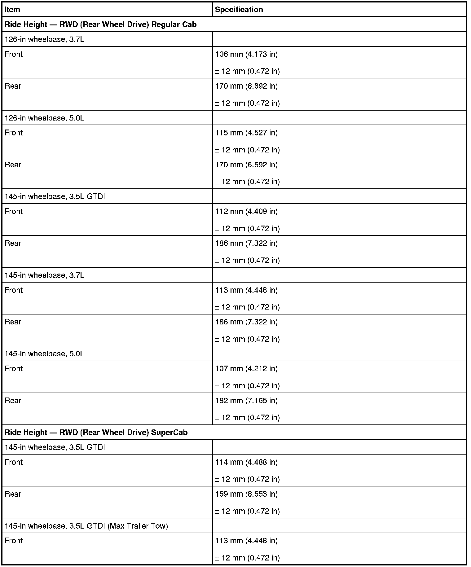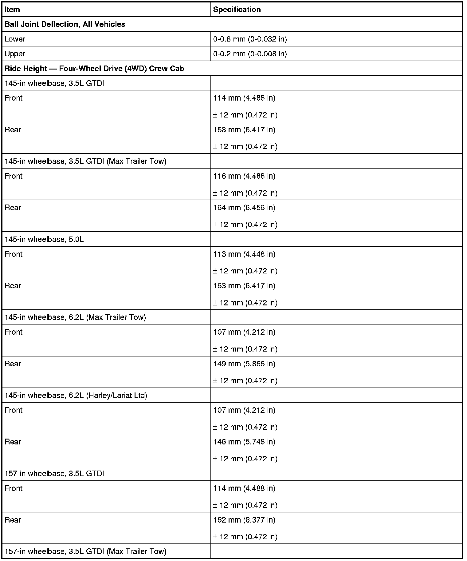Torque Specifications