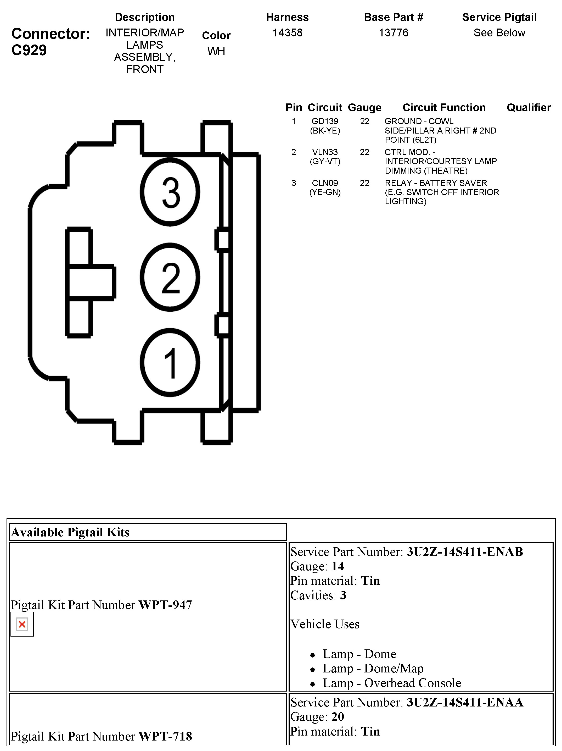 C929 Interior/MAP Lamps Assembly, Front