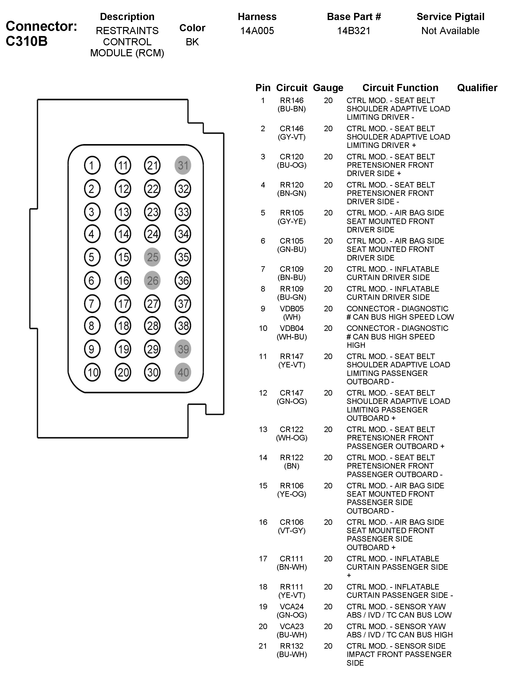 C310B Restraints Control Module (RCM)