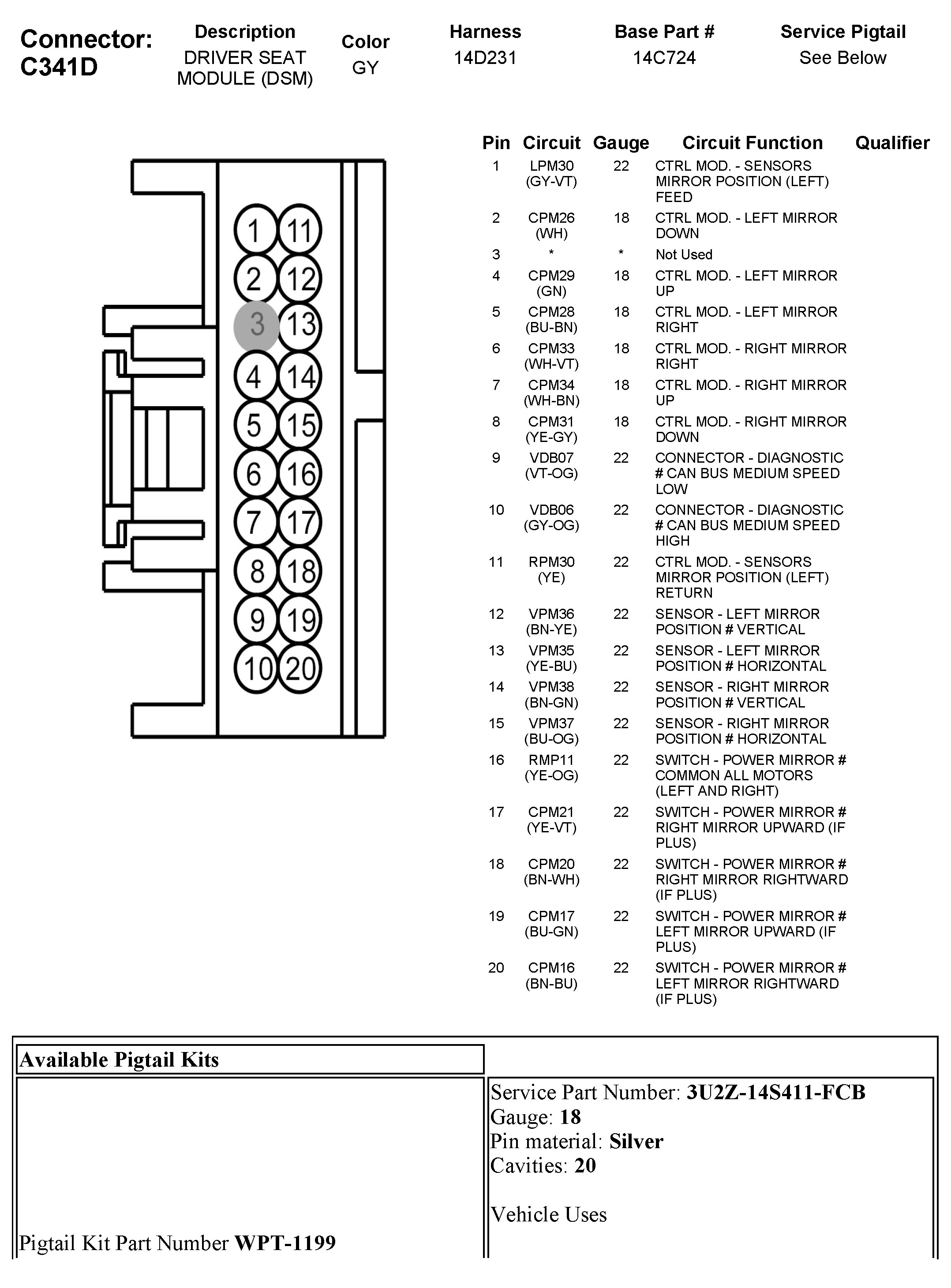C341D Driver Seat Module (DSM)