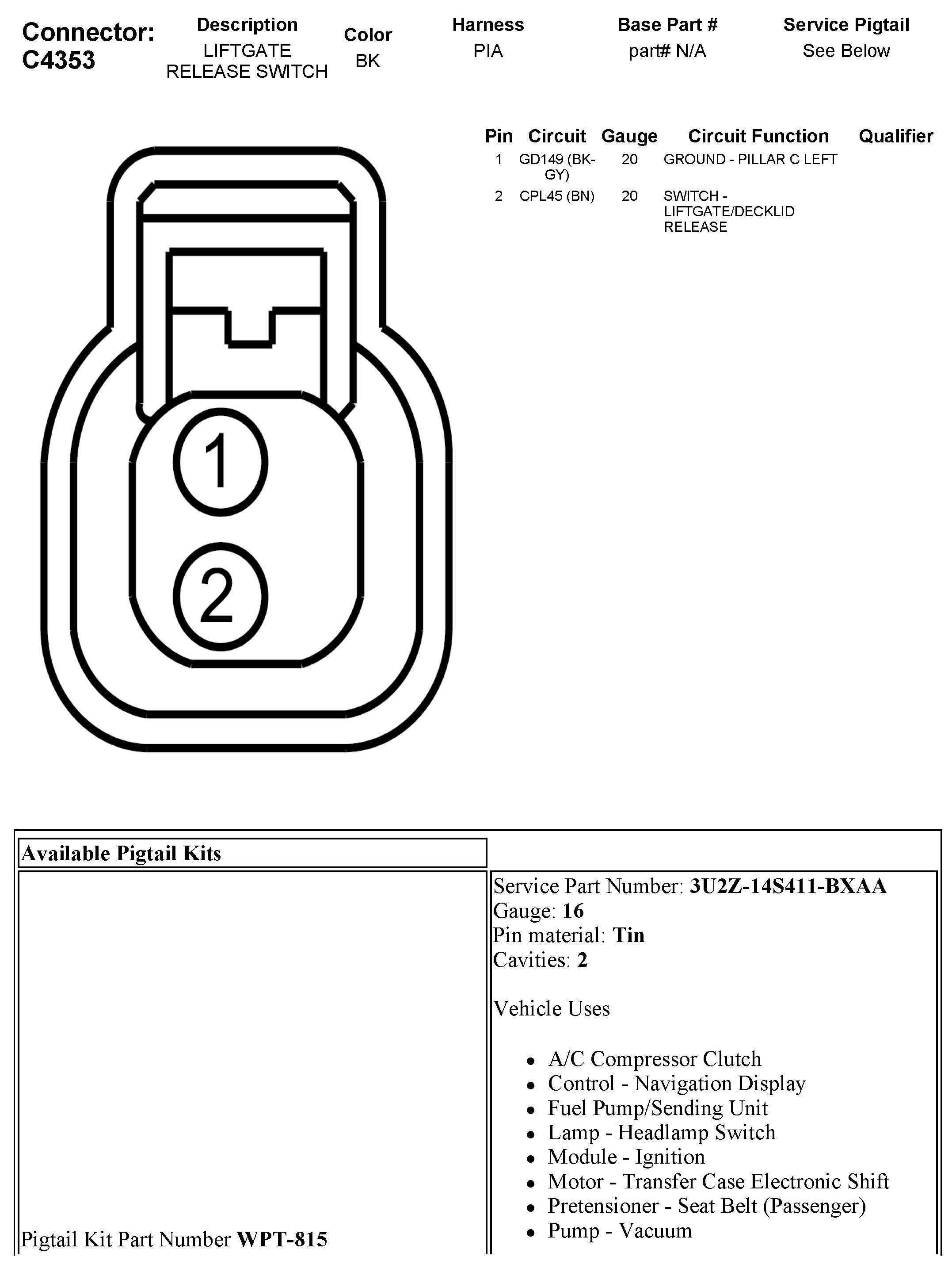 Power Trunk / Liftgate Lock Switch