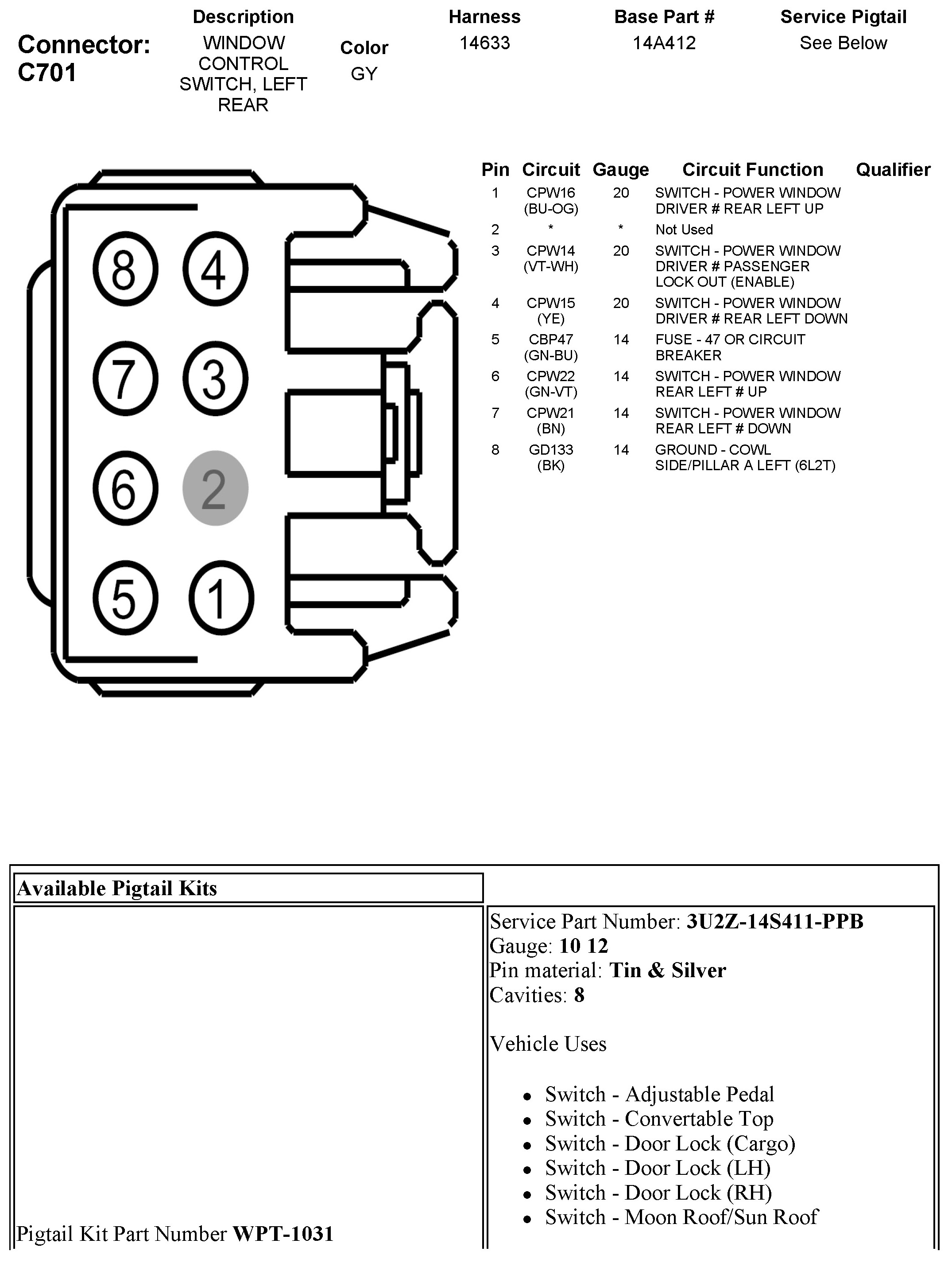 C701 Window Control Switch, Left Rear