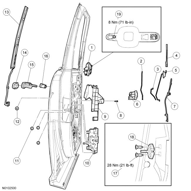 Front Door Handles, Locks and Latches - Exploded View