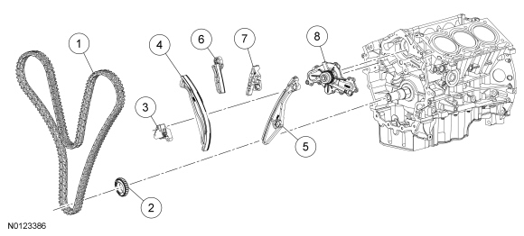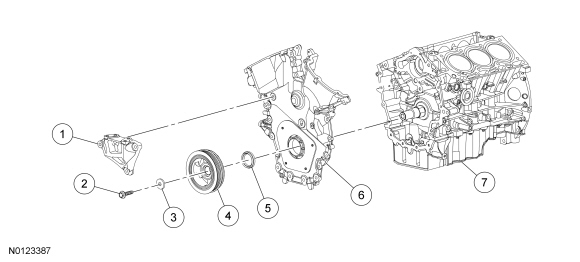 NOTICE: During engine repair procedures, cleanliness is extremely important. Any foreign material, including any material created while cleaning gasket surfaces that enters the oil passages, coolant passages or the oil pan, may cause engine failure.