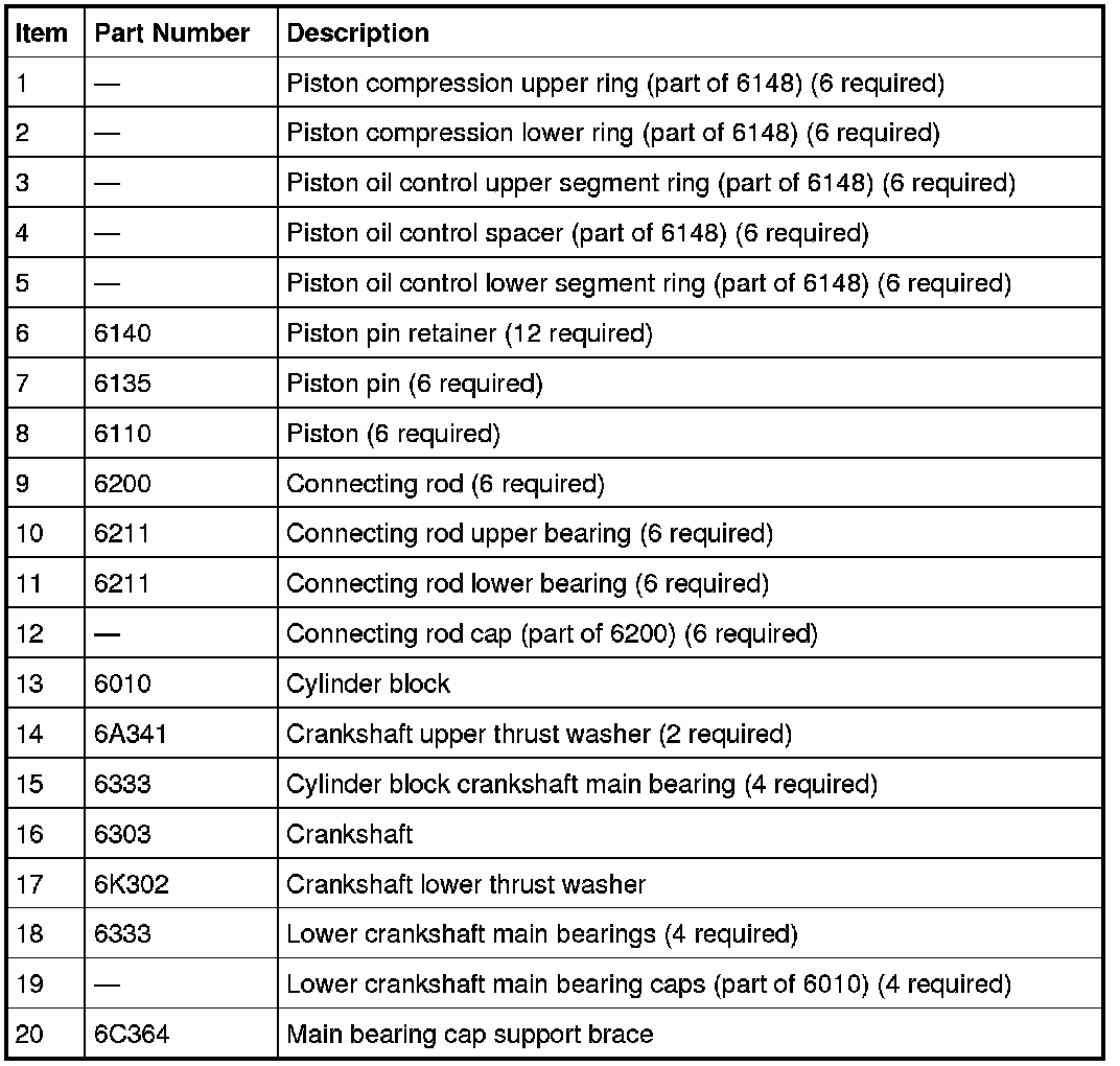 NOTE: Assembly of the engine requires various inspections/measurements of the engine components (engine block, crankshaft, connecting rods, pistons and piston rings). These inspections/measurements will aid in determining if the engine components will require replacement.