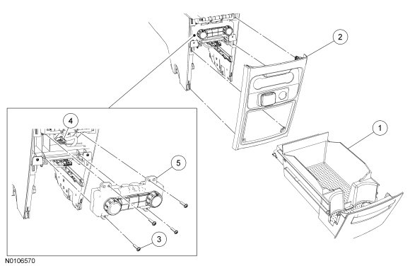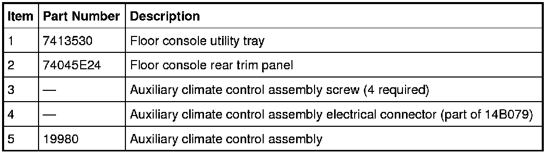 4. Disconnect the auxiliary climate control assembly electrical connector and remove the auxiliary climate control assembly.