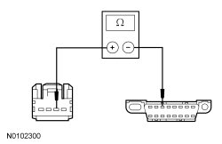 - Measure the resistance between the FCIM (Front Controls Interface Module) C2402-4, circuit GD114 (BK/BU), harness side and ground.