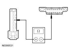 - Measure the resistance between the GPSM (Global Positioning System Module) C2300-6, circuit GD114 (BK/BU), harness side and ground.