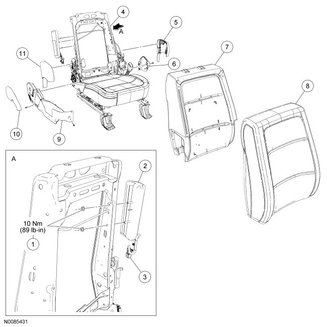 NOTE: If a side air bag deployment took place, a new seat back pad, trim cover and side air bag module must be installed. The seat back frame should be installed new if necessary.