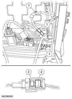 1. Separate the connector and wire harness retainers.