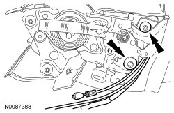 1. If equipped, attach the manual lumbar cable retainer to the outboard recliner.