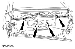 9. Separate the wire harness and cable retainers.