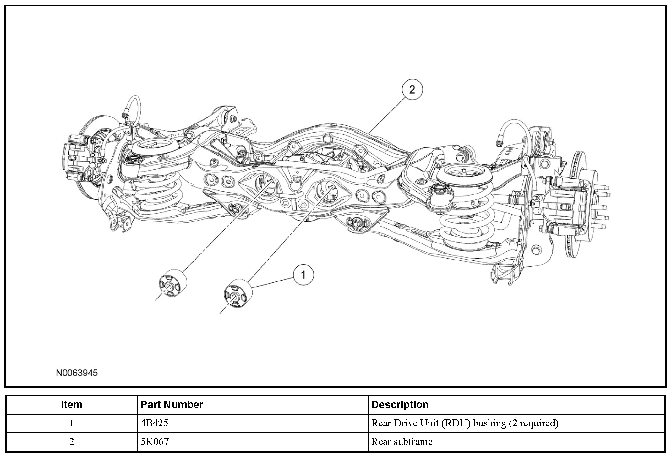 - For subframe revision 8T43-5K067-BA, the RDU bushing must be inset 2 mm (0.08 in).