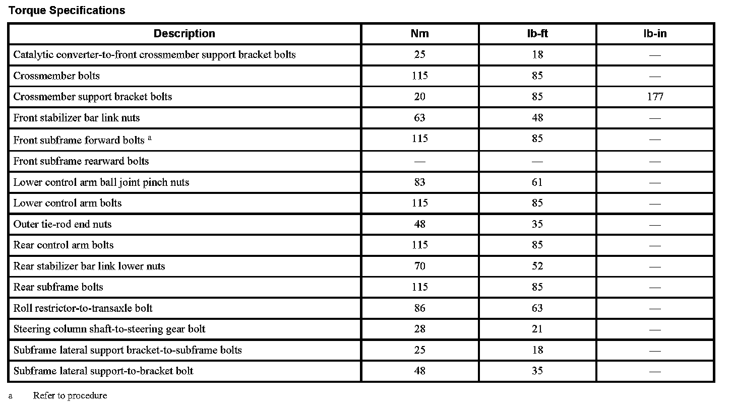 Subframe: Specifications