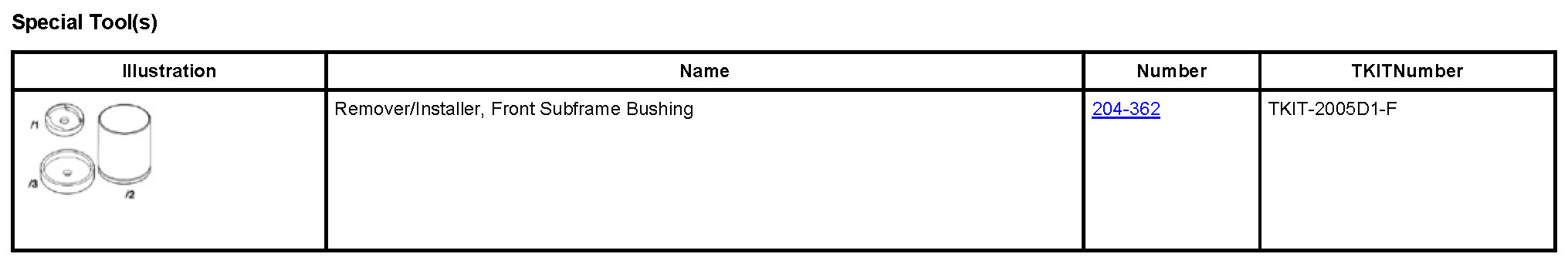 1. Assemble the 204-362 to the front subframe with the new subframe bushing.