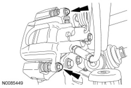 17. NOTICE: Do not allow the caliper to hang from the brake hose or damage to the hose can occur.