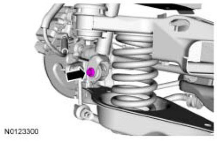 8. Remove and discard the 2 rear shock absorber lower bolts.
