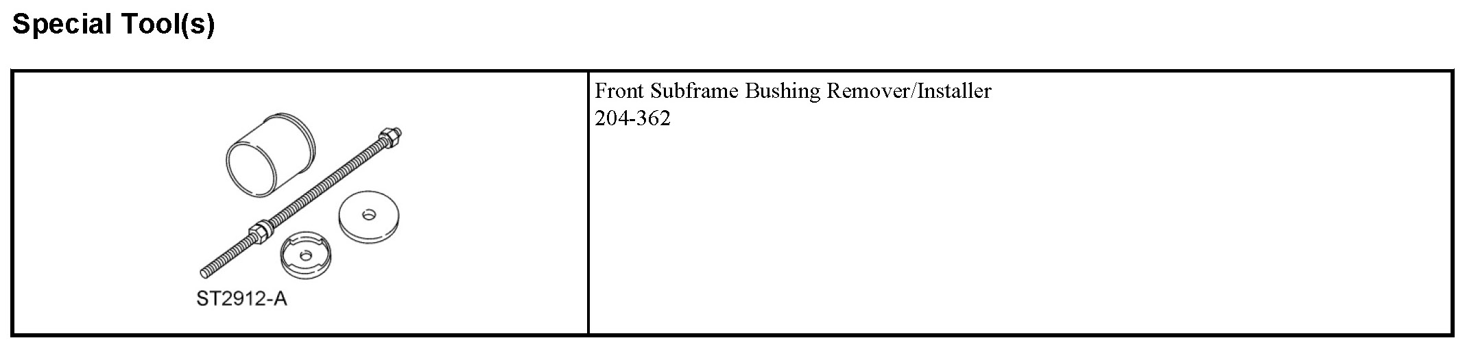 1. Assemble the Front Subframe Bushing Remover/Installer to the front subframe with the new subframe bushing.
