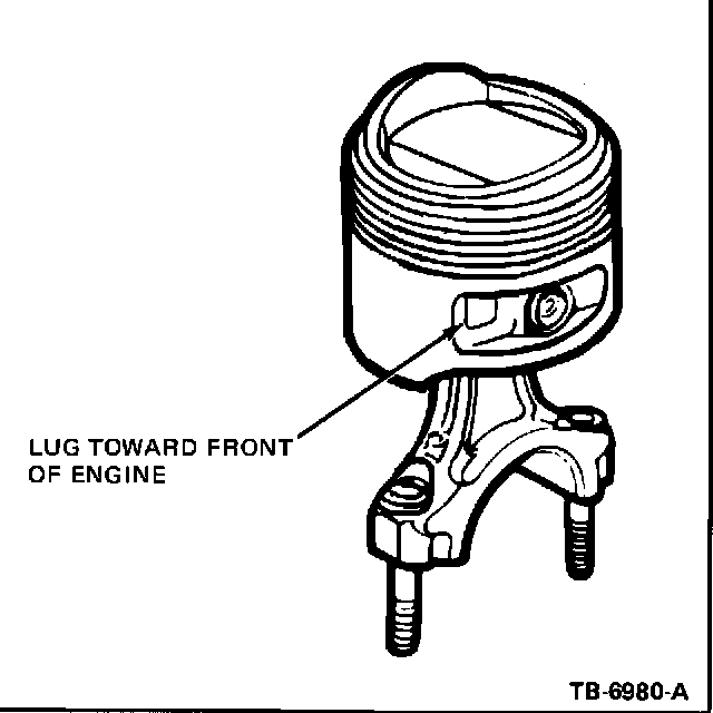 Piston orientation in relation to front of engine is identified by either an arrow stamped at the top surface of the piston or a small lug located left of the piston pin hole (Figure 13).