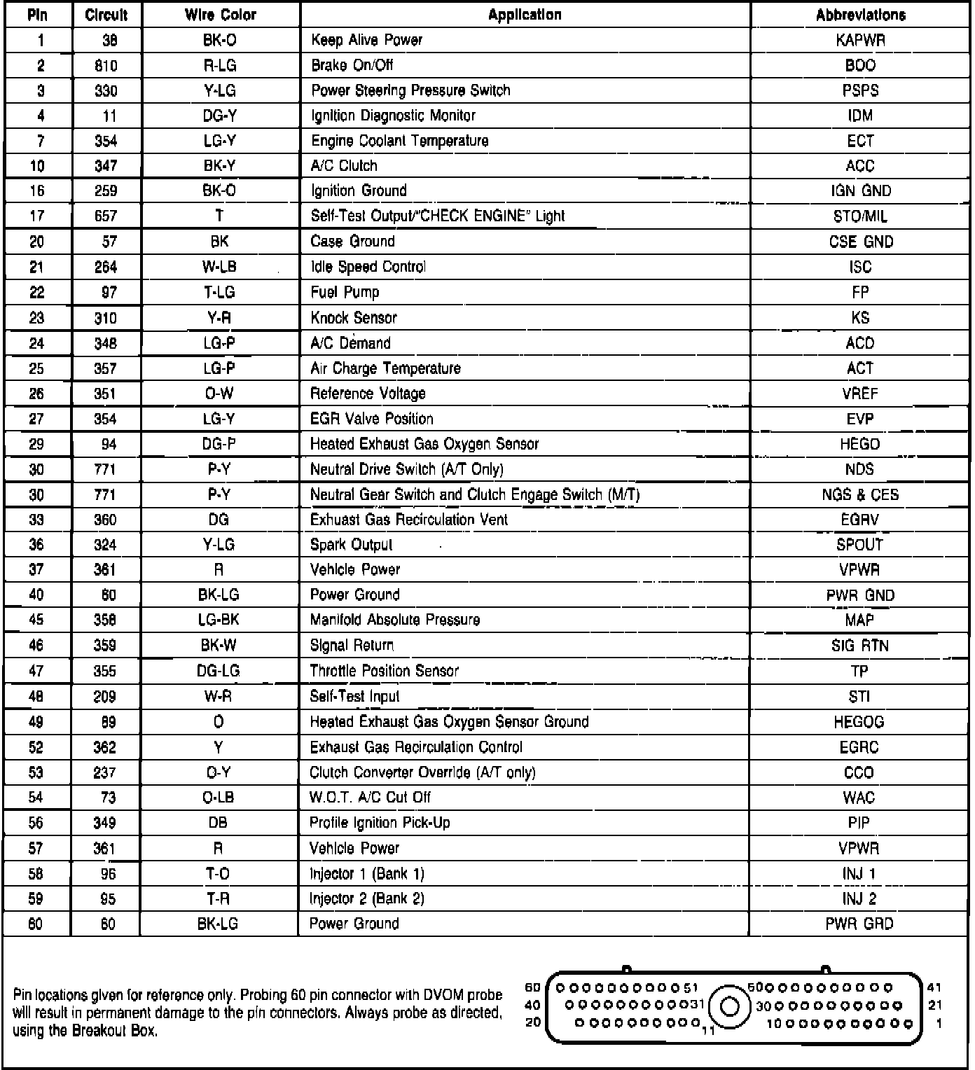 Fig. 297 EEC-IV module connector pin usage. 1987 4-140 EFI engine: