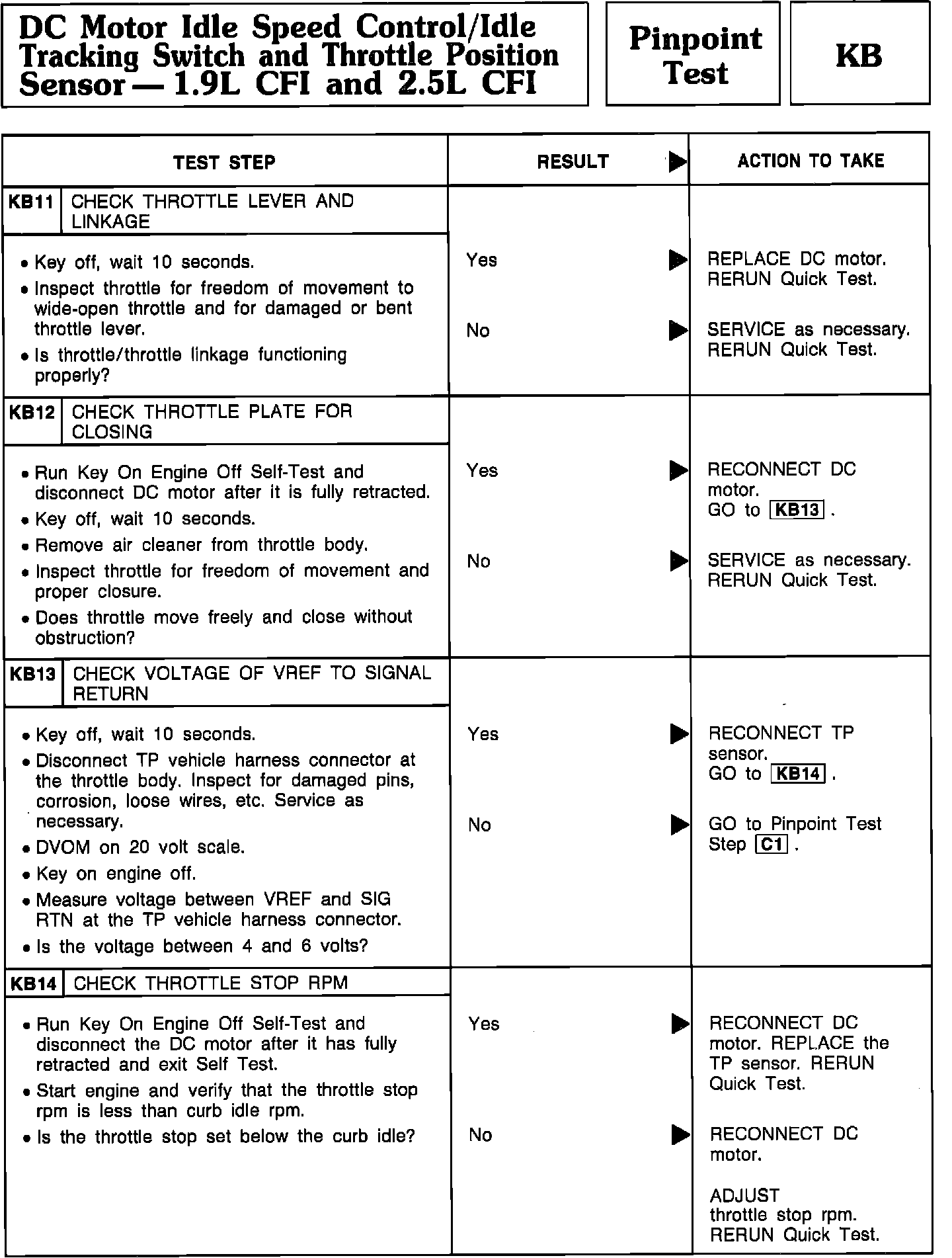 Pinpoint Test KB11 Thru KB14 - DC Motor Idle Speed Control/Idle Tracking Switch/TPS: