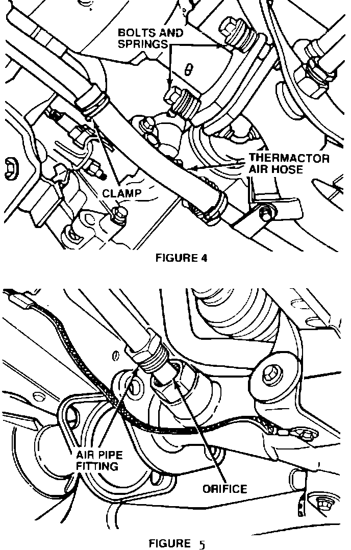 17. Remove hose clamp. Disconnect thermactor air hose from catalyst. (Fig. 4)