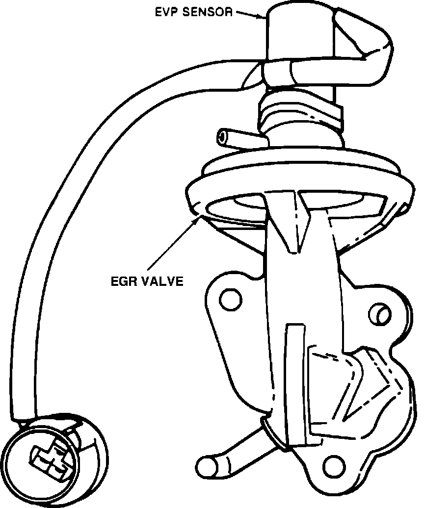 The EGR valve position (EVP) sensor, Fig. 7, is equipped on California models only. The EVP detects EGR valve malfunctions, then supplies this information to the ECA and will illuminate the malfunction indicator lamp is an abnormality is detected. The EVP is mounted on the EGR valve assembly.