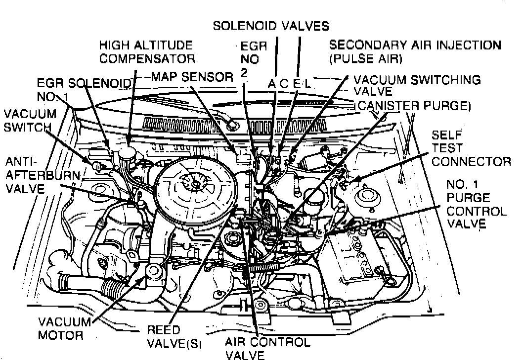 Engine Compartment Emission System Component Locations: