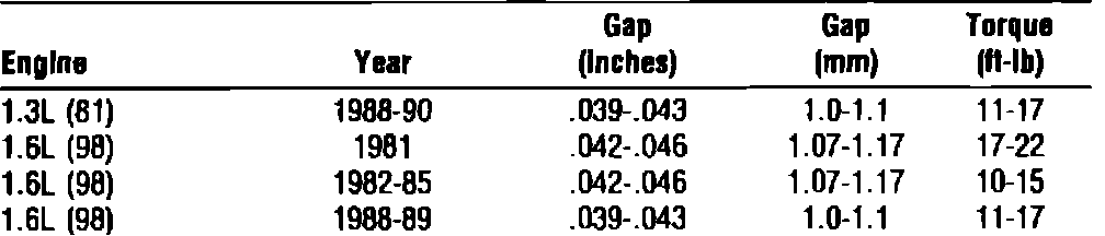 Spark Plug: Specifications