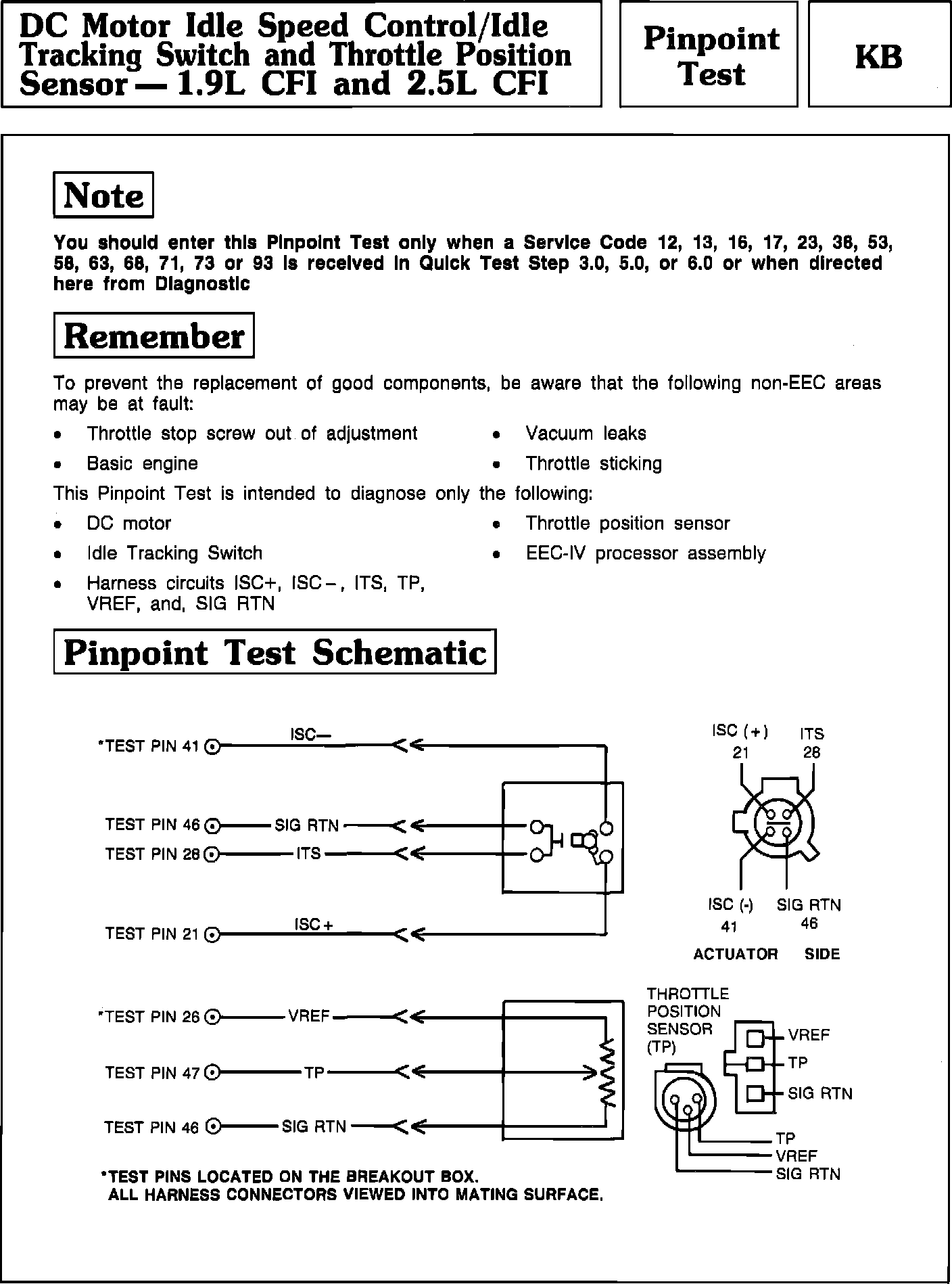 Pinpoint Test KB - DC Motor Idle Speed Control/Idle Tracking Switch/TPS: