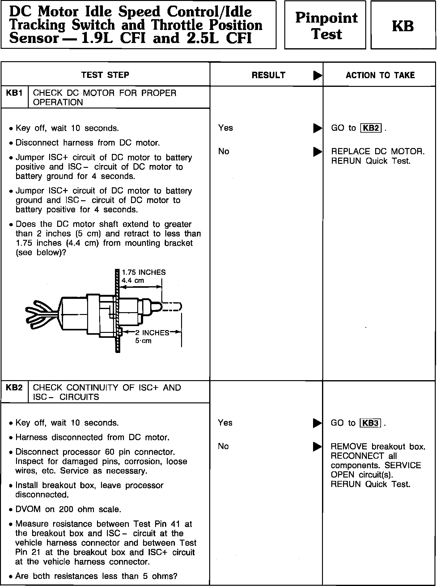 Pinpoint Test KB1 & KB2 - DC Motor Idle Speed Control/Idle Tracking Switch/TPS: