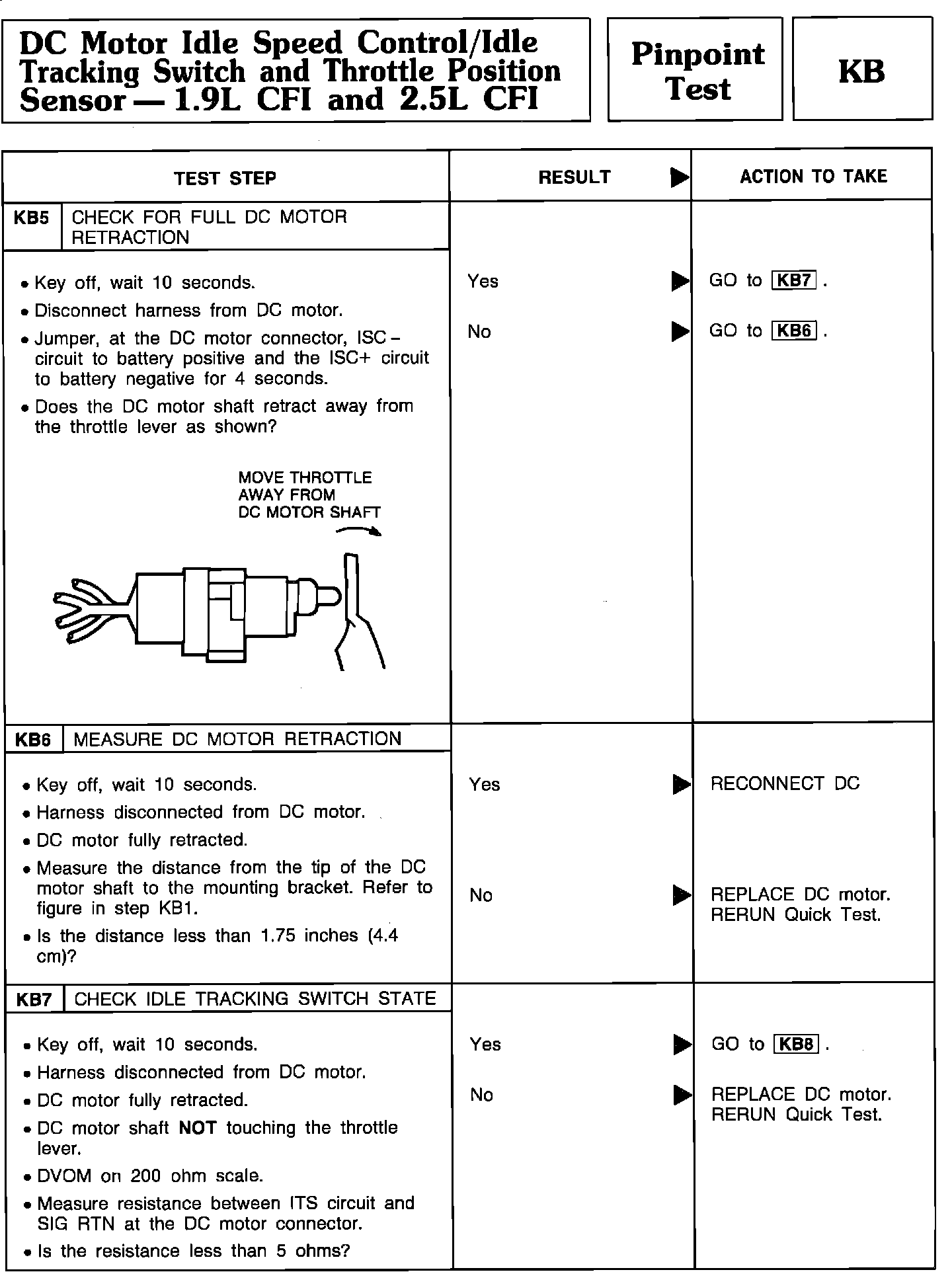 Pinpoint Test KB5 Thru KB7 - DC Motor Idle Speed Control/Idle Tracking Switch/TPS: