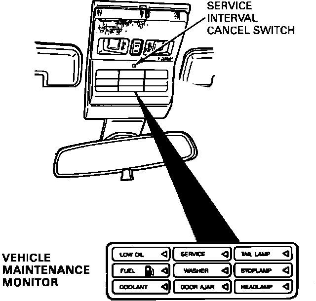ISSUE: The service interval indicator light on the vehicle maintenance monitor (VMM) comes on at about 7500 mile intervals. After the scheduled maintenance has been performed, the VMM must be reset to turn off the service interval indicator light.